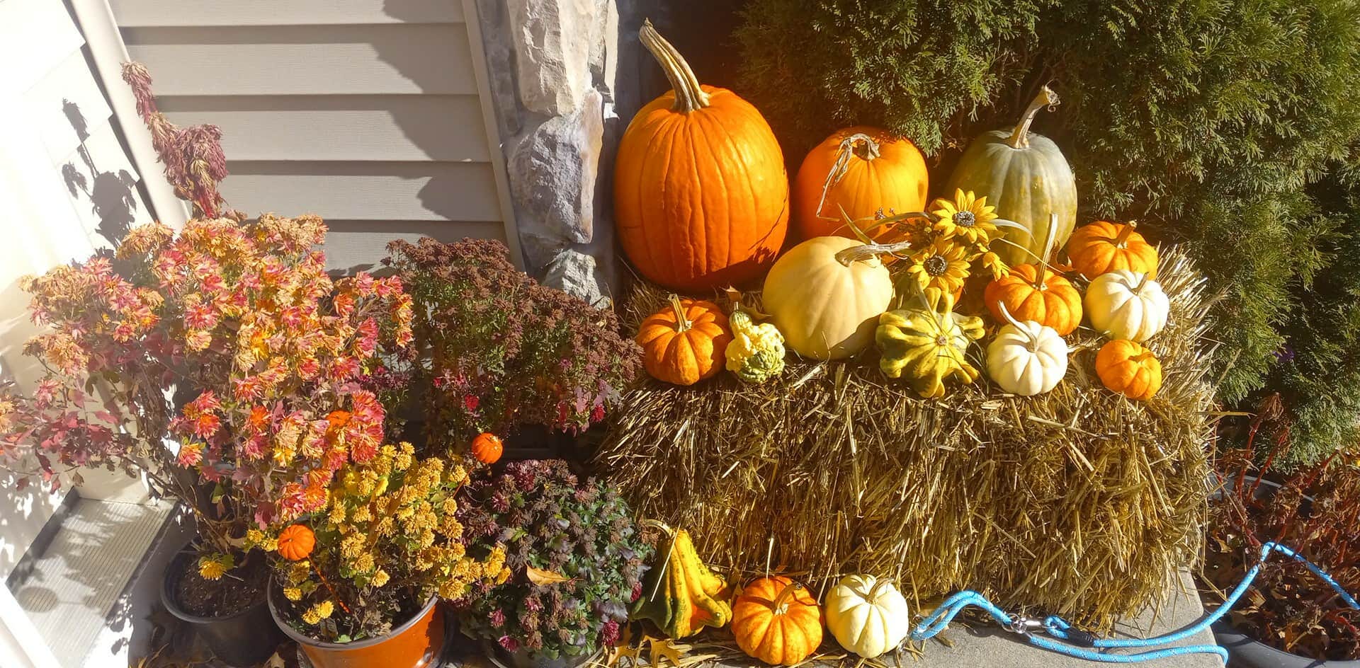 I had selected and arranged everything, and added the mums which mom has had the past few years (their planters usually live in the shrubscapes). I even carried, loaded, and unloaded the bale of hay that I lifted off the pile at the local farmer’s market with no hands-on assistance. I have dreamed of creating an autumnal harvest display on my front porch (wherever it’s been) since I was a little kid, and I finally made my dream come true this year! Not only that, but I GREW MY PUMPKINS! So grateful✨